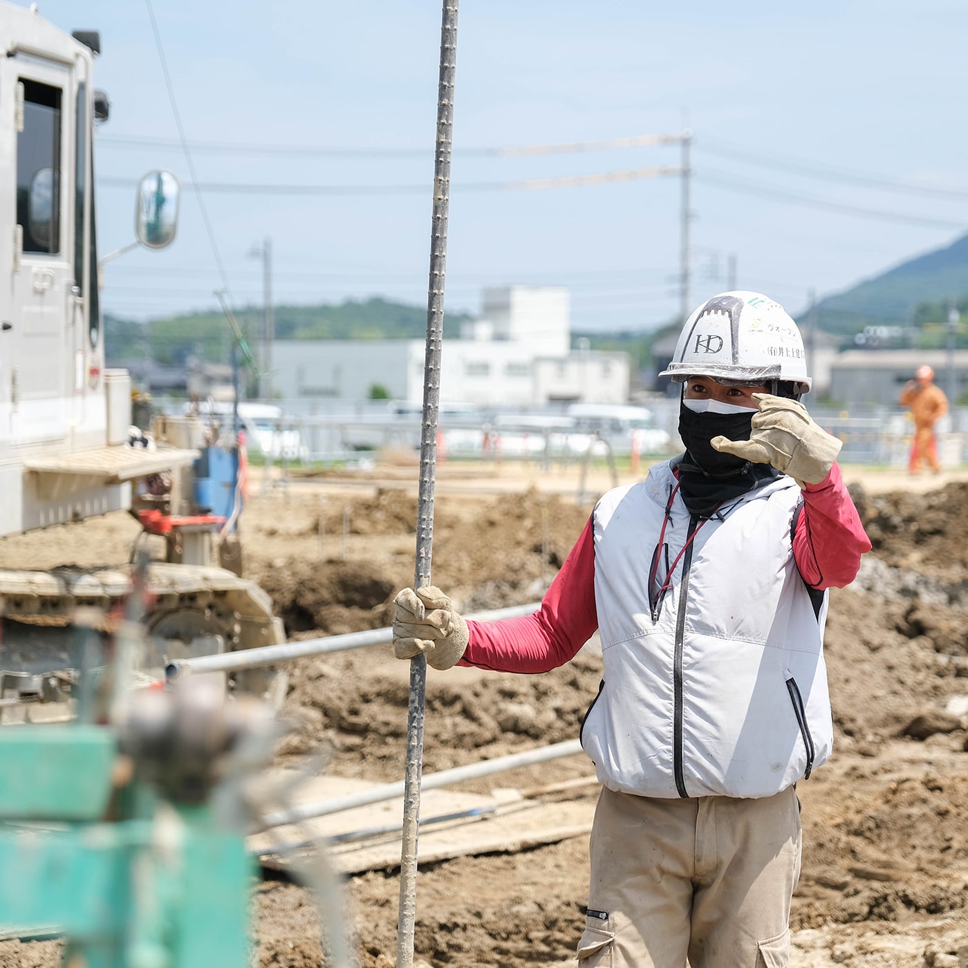 柱状改良、杭打ち工事といった地盤改良工事に加え、広島県内では数少ない杭抜き工事も行っております。古いタイプの杭がある、地盤が安定していないなど、手ごわい現場についてもぜひご相談ください。